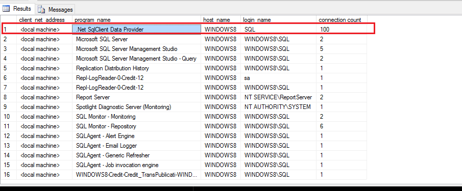 then you will see that the 100 connections from .net client has been reached. This proves it is nothing to do with sql server !!